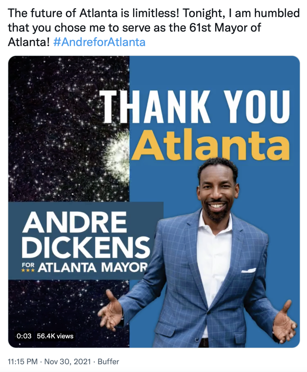 On Tuesday, Andre Dickens defeated Felicia Moore in a runoff election making him the 61st mayor of Atlanta.