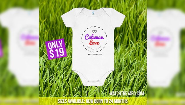 WatchTheYard.com has a limited amount of “Coleman Love” onsies and right now we have sizes ranging from NEW BORN to 24 MONTHS. Whether your baby is hitting the yard, getting it popping at the cookout, or crawling uncontrollably around your housee, this shirt lets the word know that he/she comes from the greatness that is Coleman Love! The tagline under “Coleman Love” says “Crying is how I SET IT OWT”