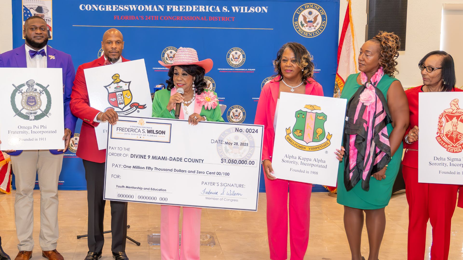 On Wednesday, May 28, 2025, U.S. Congresswoman Frederica Wilson awarded more than $1 million in federal funding to historically Black fraternities and sororities in Miami-Dade County through a Congressional earmark aimed at preserving African-American history and expanding community outreach.