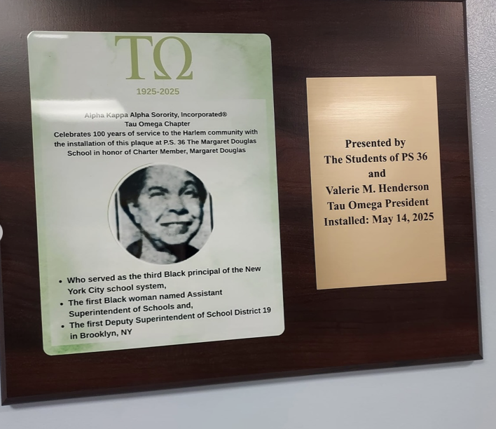 In a powerful celebration of Black excellence in education, the Tau Omega Chapter of Alpha Kappa Alpha Sorority, Inc. unveiled a commemorative plaque honoring the life and legacy of trailblazing educator Margaret Douglas on May 14, 2025, at P.S. 36 in Harlem.
