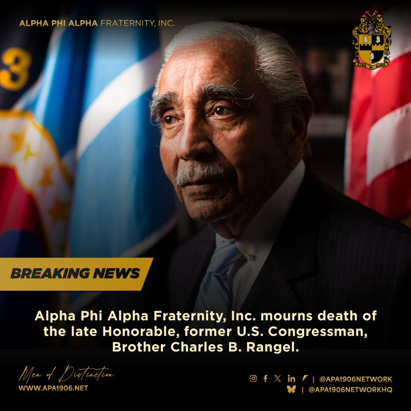 Alpha Phi Alpha Fraternity, Inc. extended its deepest condolences to Rangel’s family, loved ones, constituents, and all who were inspired by his life of service.