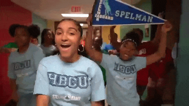In the video you see middle schoolers dressed in HBCU colors and waving HBCU flags and banners.