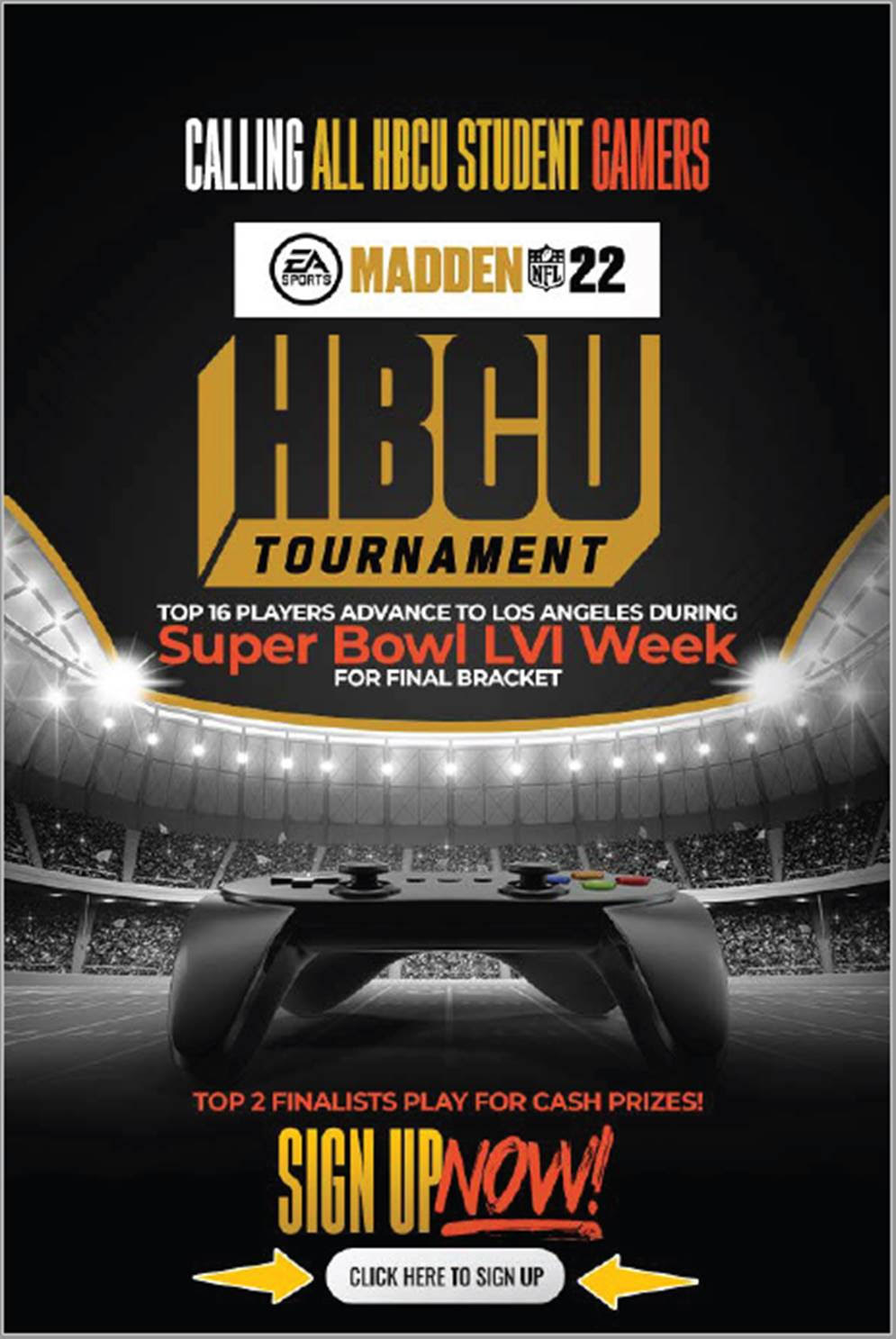 Registration will be open until Dec. 3, 2021, with limited slots for an online single elimination qualifier tournament on December 5, 2021. The top 16 finalists will advance to compete in the NFL Madden x HBCU Showcase during Super Bowl Week in Los Angeles. Players can register to compete in the tournament at http://hbcutournament.nfl.com/.