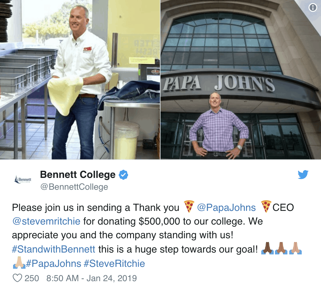 On Thursday, Bennett College took to twitter to thank Papa John’s for their contribution.