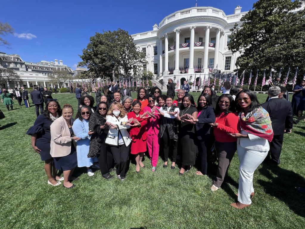 CNU is a small school in VA, and predominantly white. Navigating that as a young Black woman committed to social justice was a training ground for the work I would do – as I’ve had to navigate advocating for racial justice and equity in predominantly white spaces. There wasn’t that much diversity, so the Black students all knew each other and created a bit of a family. My line sisters and I all knew each other before we pledged. I spent more time in my extracurriculars, as president of my chapter and our multicultural student association – among many other organizations – graduating with the Dean’s Service Award for my contributions to campus. I spent a lot of time in the university president’s office pushing for fair treatment of Black students and our interests. This all laid the groundwork to remain rooted in service, and there’s nothing wrong with making good trouble.