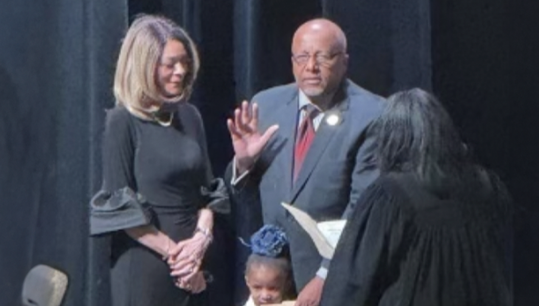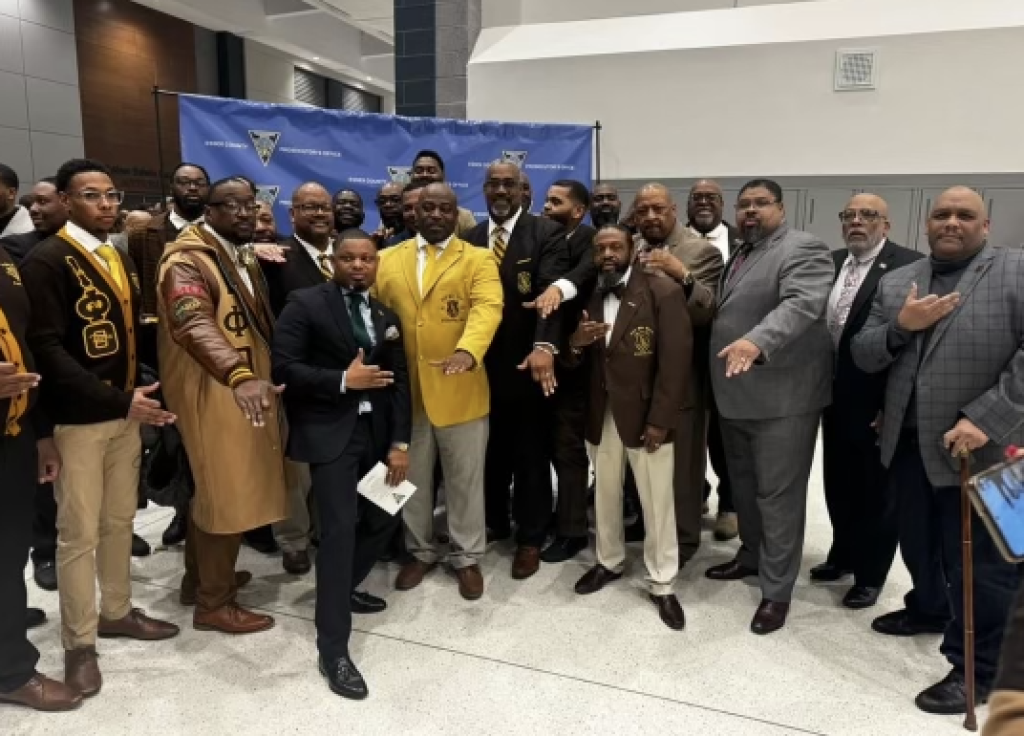 Iota Phi Theta brothers from across the state came to celebrate at his swearing in ceremony including the fraternity’s International Grand Vice Polaris Myron J. Covington.
