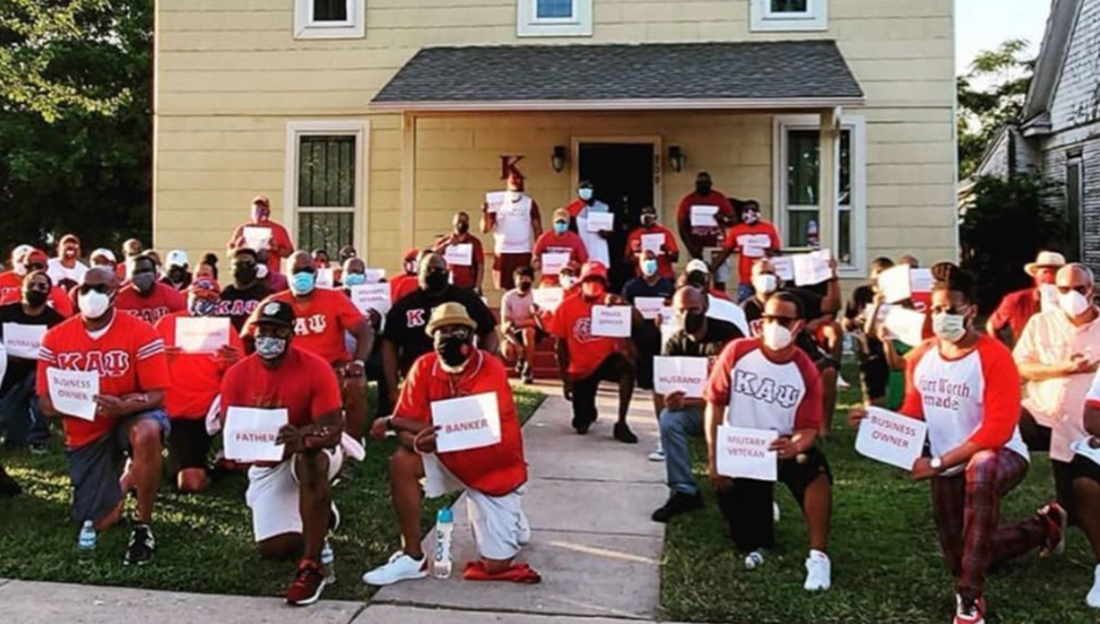 The brothers of the Fort Worth Alumni Chapter of Kappa Alpha Psi gathered outside of their frat house in letters to show the humanity of Black people and their struggle for justice.