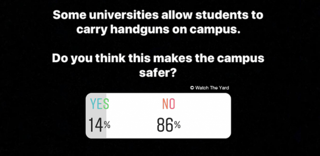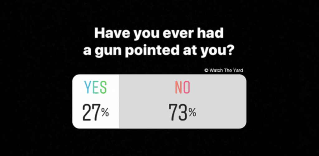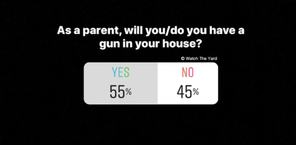 We used the polling function on our Instagram and asked 13 yes or no questions to our audience about their experiences and thoughts with and about guns. Over 4,000 people responded to our questions.