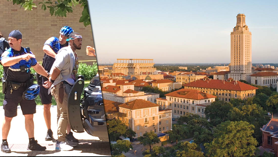 According to UT Police Chief David Carter, officers responded to a call from the Gregory Gym in the 2100 block of Speedway before 2 p.m., less than two minutes after receiving a call. The officer found White walking around the scene with a Bowie-style hunting knife and took him into custody.