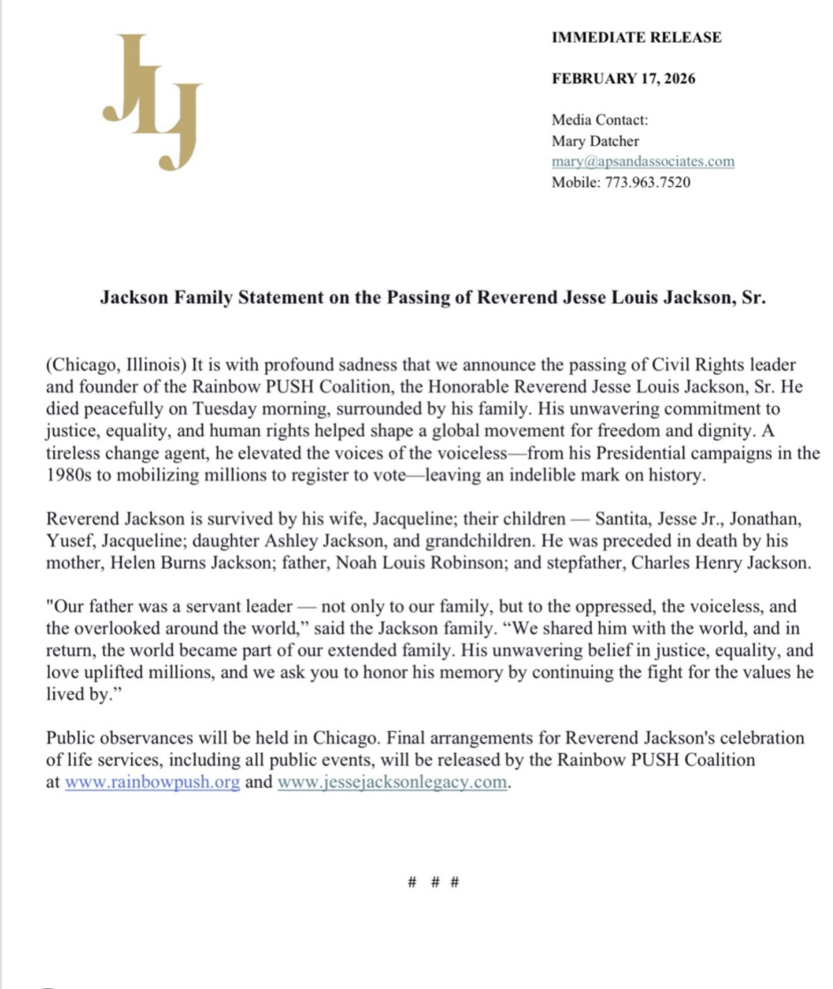 In their official statement, the Jackson family shared that he passed peacefully, surrounded by loved ones, leaving behind a legacy that reshaped American politics, civil rights, and global human rights advocacy.