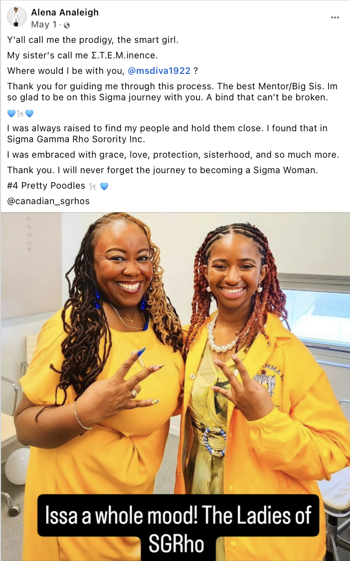 Now, as a member of Sigma Gamma Rho Sorority, Inc., Alena Analeigh McQuarter continues to exemplify the principles of sisterhood, scholarship, and service, breaking barriers and building futures.