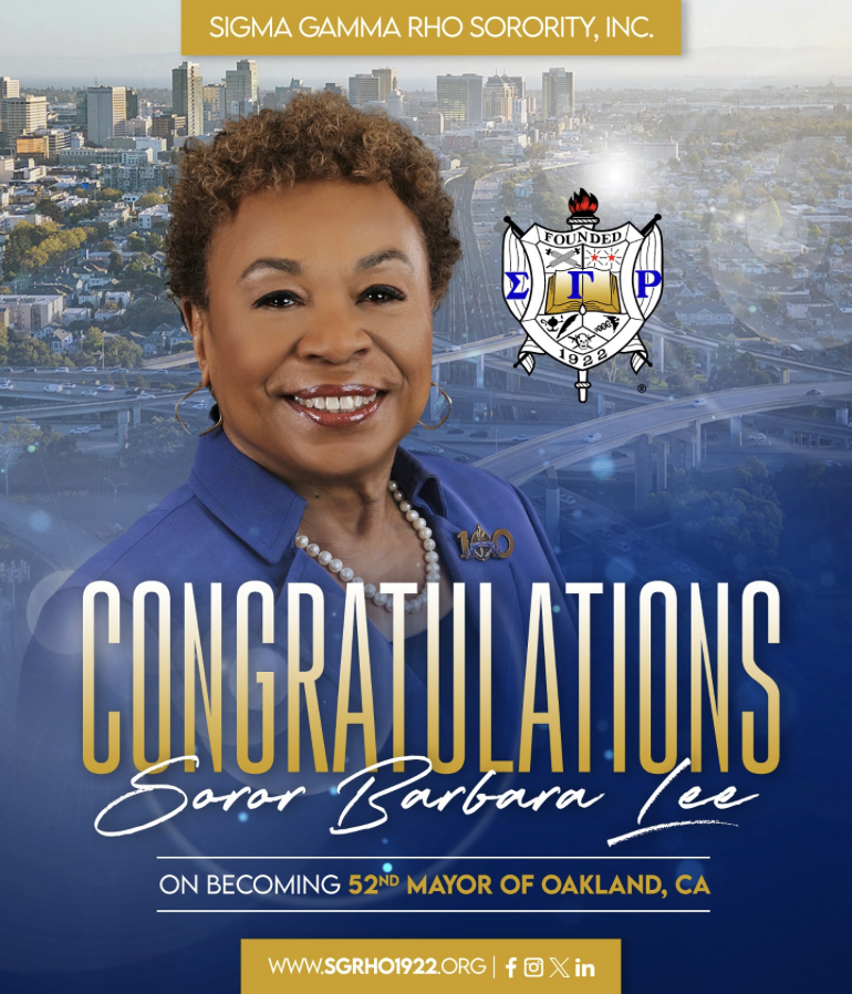 “Congratulations to Soror Barbara Lee, the newly elected 52nd Mayor of Oakland, CA! A true trailblazer, advocate, and champion for justice, Soror Lee’s historic leadership continues to inspire communities across the nation. From the halls of Congress to City Hall, she leads with purpose, passion, and a commitment to the people. We are beyond proud to celebrate this moment with our Soror—representing Greater Service, Greater Progress every step of the way! 📍Oakland, your future is in Rhoyal hands.”