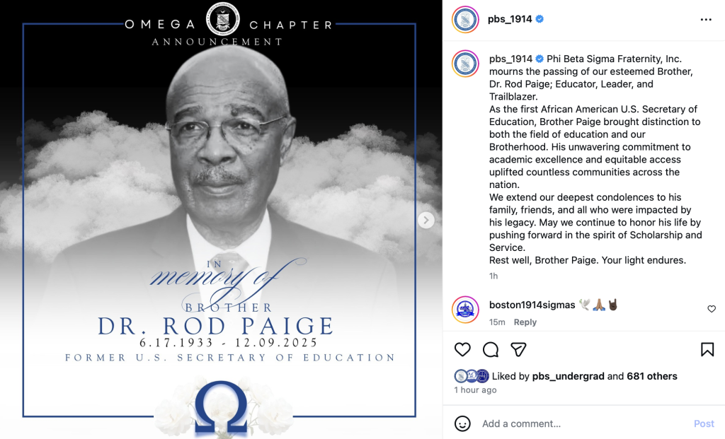 Phi Beta Sigma Fraternity, Inc. also issued a statement mourning the loss of their brother, calling him an educator, leader, and trailblazer whose commitment to academic excellence and equitable access uplifted communities nationwide. The fraternity encouraged members to honor his life through continued dedication to scholarship and service.