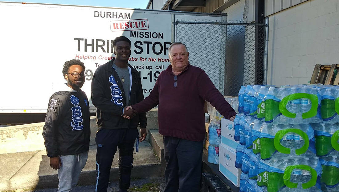 The Xi Gamma Chapter of Phi Beta Sigma Fraternity, Inc. at UNC-Chapel Hill recently delivered donated bottles of water, baby food, and cleaning supplies to the Durham Rescue Mission in North Carolina.