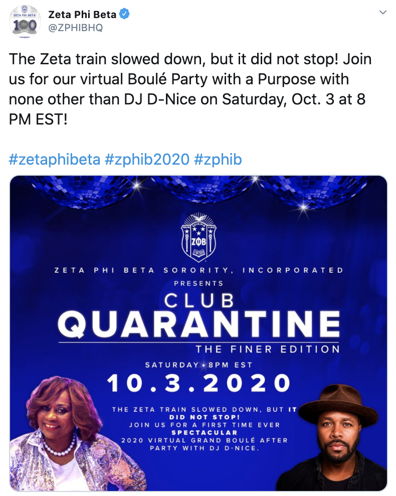 Zeta Phi Beta Sorority, Inc. announced today that DJ D-Nice will be DJing their 2020 Virtual Grand Boule After Party on October third.