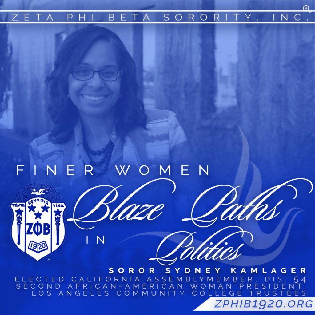 Democratic Assemblywoman Sydney Kamlager, a member of Zeta Phi Beta, will be sworn in to the California State Senate this month after winning two-thirds of the vote in a special election to fill the state’s vacant 30th Senate District seat.